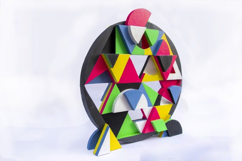 “I am interested in isiZulu material culture and how it is a signifier of blackness and an account of events. My wooden sculpture, “Isiqhaza saseGiyane,” is based on ukuklekla, the Zulu practice of slicing earlobes open to adorn them with earplugs known as iziqhaza. The sculpture, my interpretation of iziqhaza, plays with balance, harmony, symmetry, ambigrams, mirroring, repetition, rhythm, complementariness and colour.